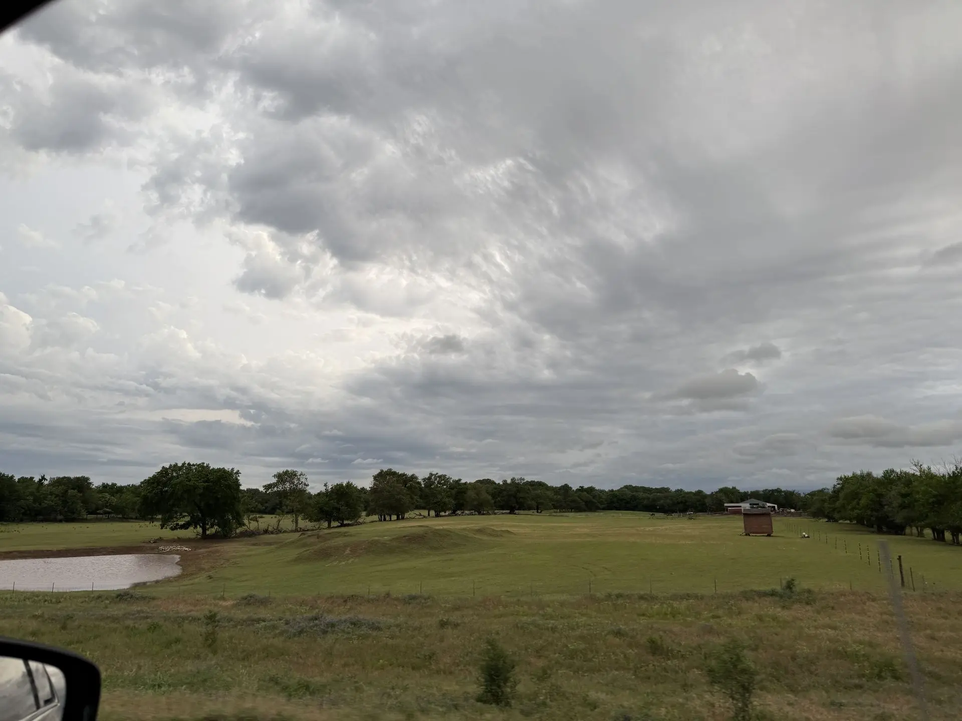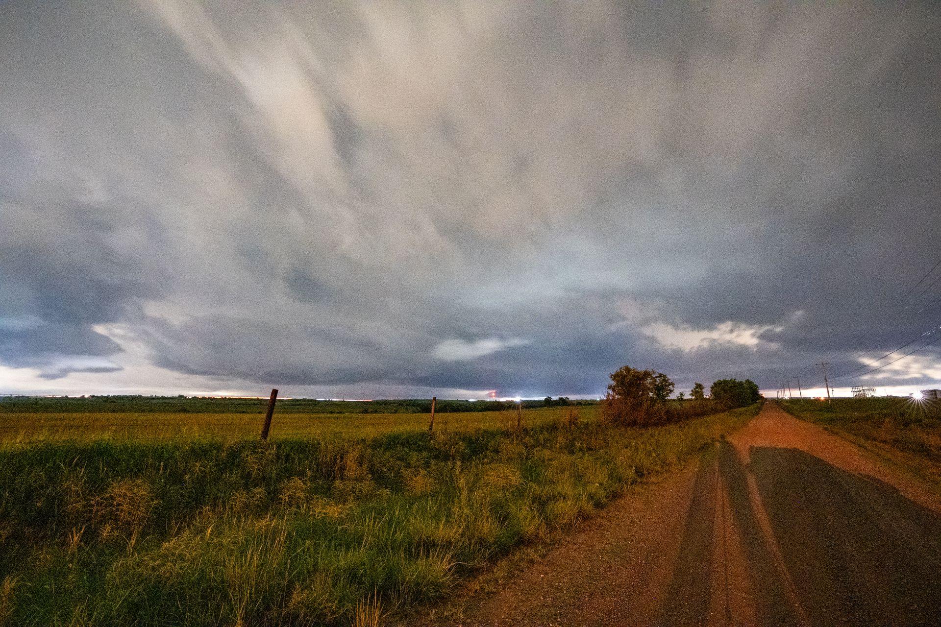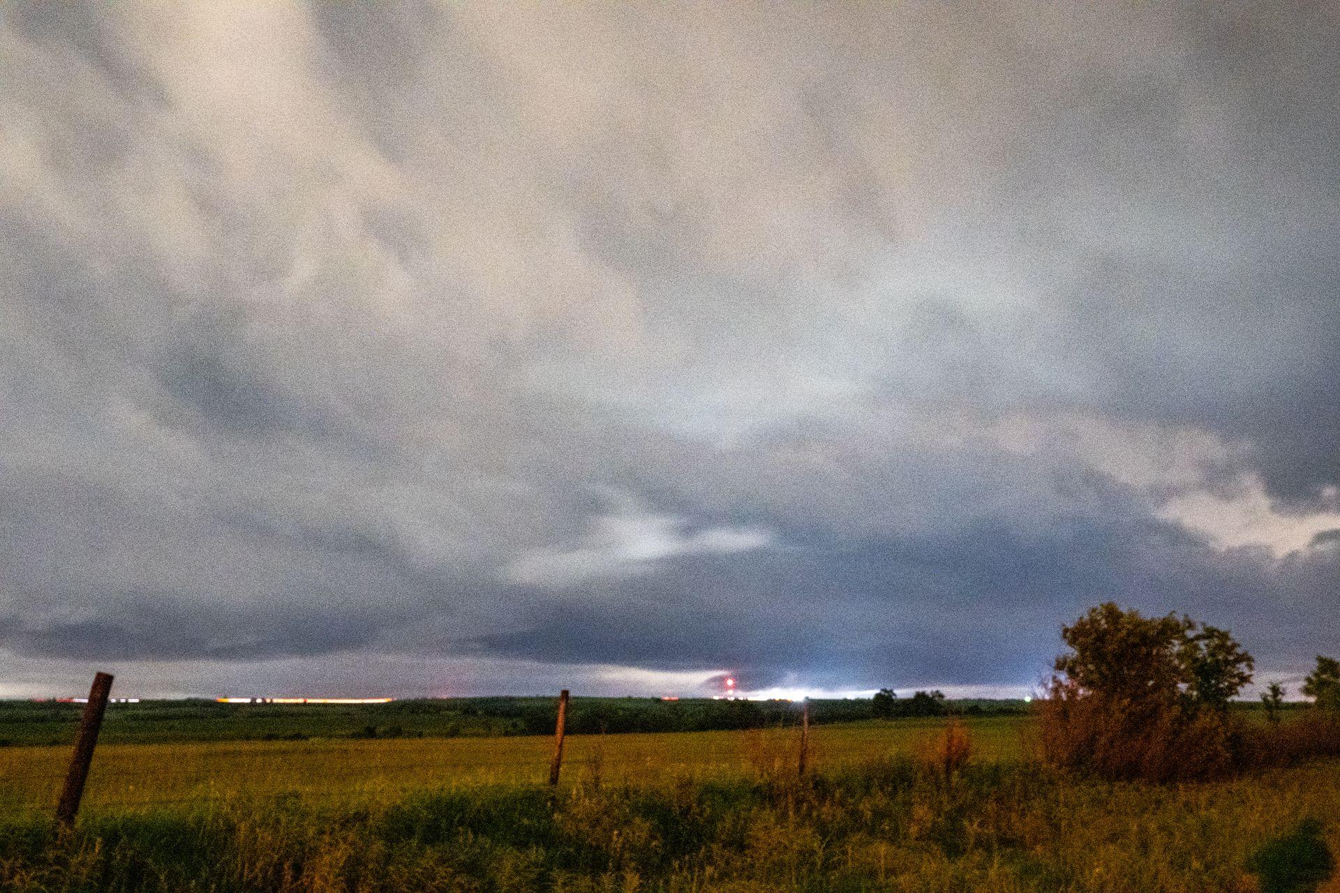 The last ~hour before we arrived in Norman, we saw some really beautiful storms. Lots of lightning and some very well defined cloud features. We stopped about 15 minutes from our hotel to try and watch the storms a little, and I took out my camera.