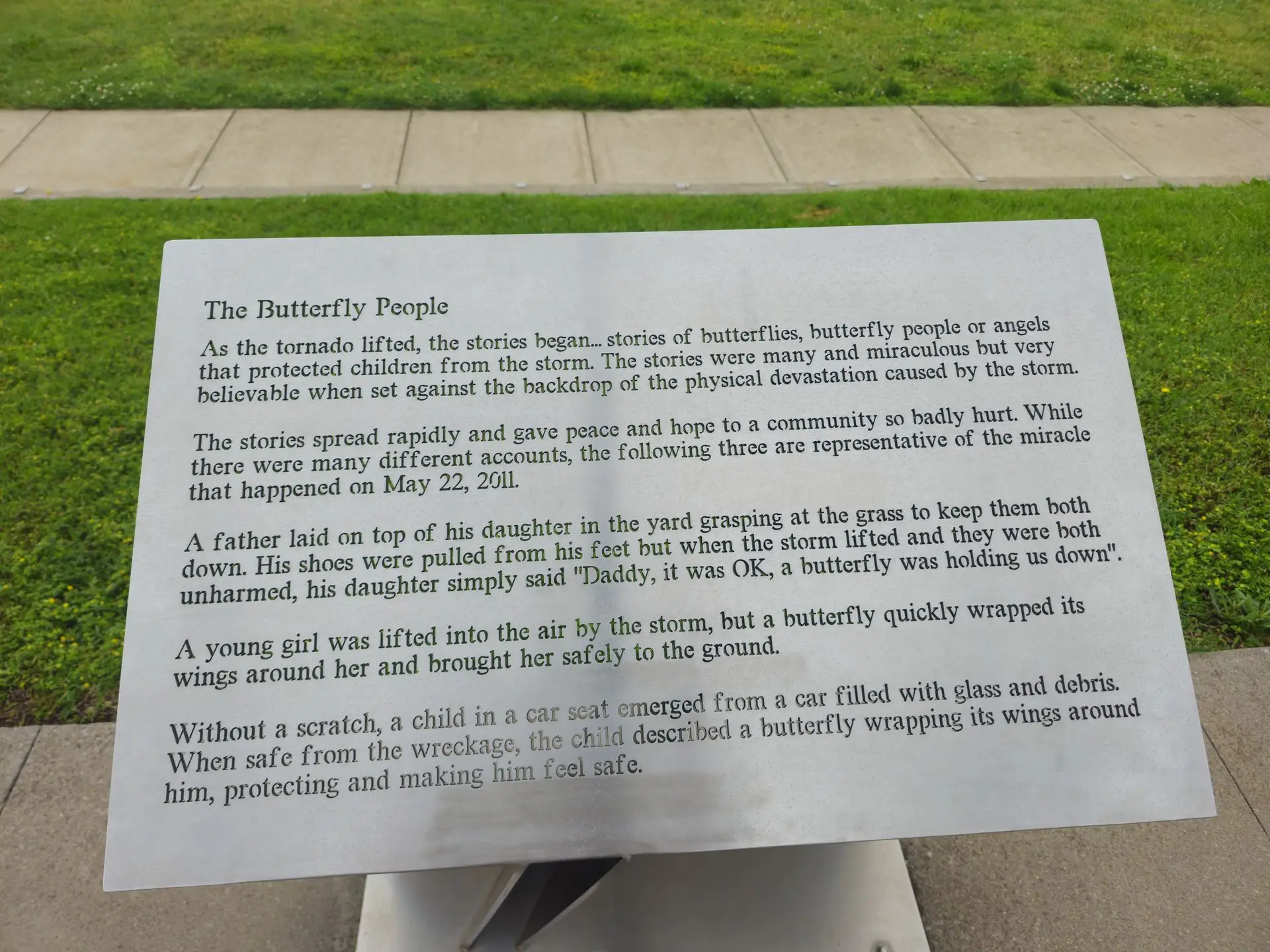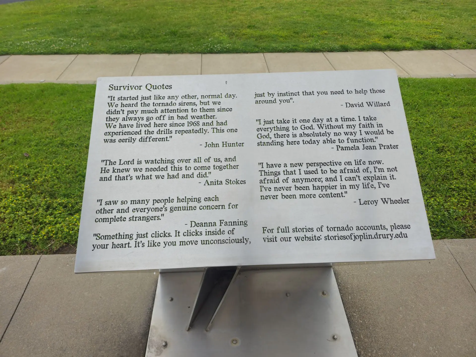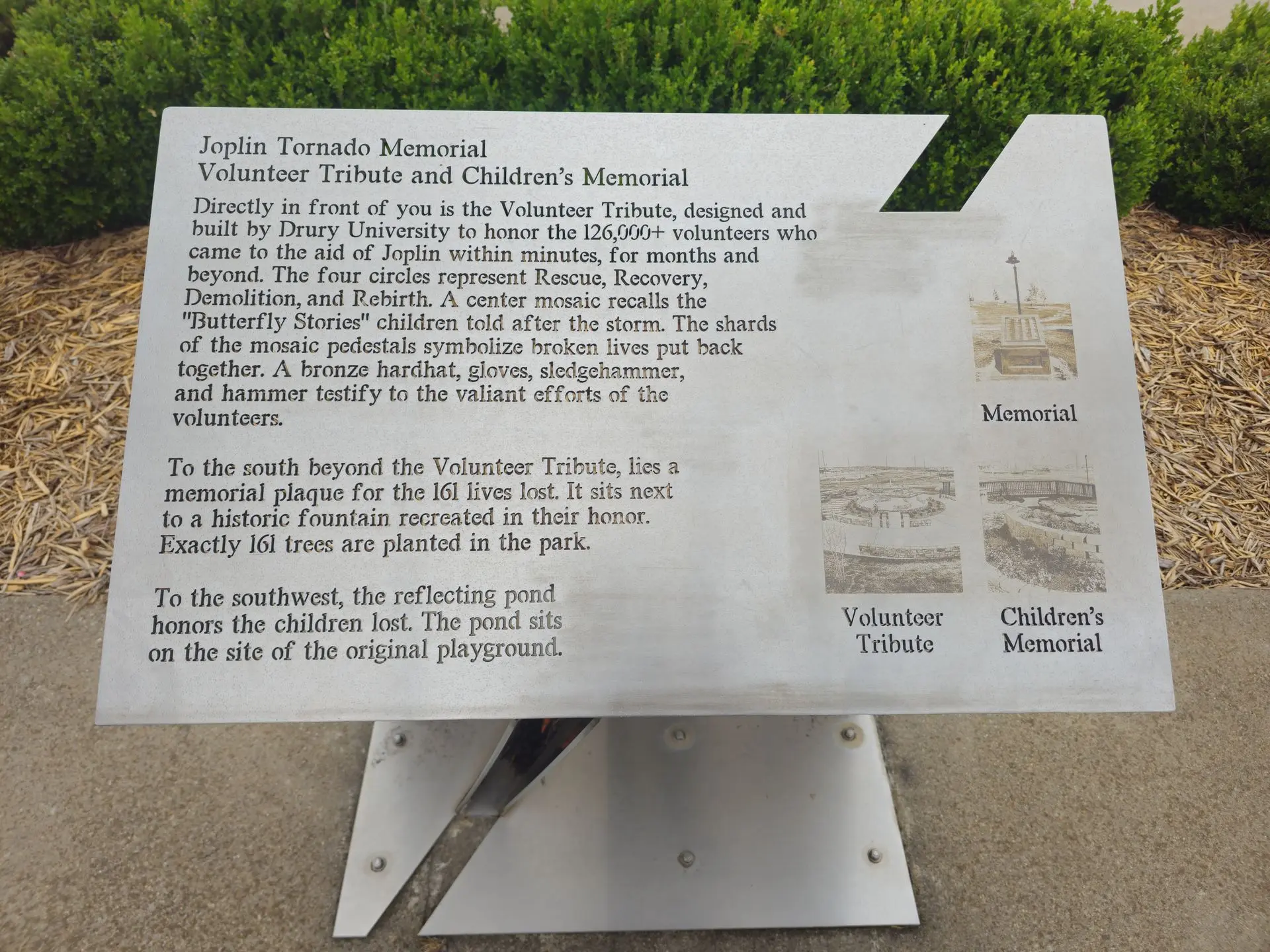 We found that as we went around the town, still today you can clearly see where the tornado passed through town, given where old construction changes into new construction, and where mature trees change to open lots or young trees. We also visited several memorials, and learned about the severe impact the storm had, but also the magnificent humanitarian response it provoked. I've included photos from the memorials below.